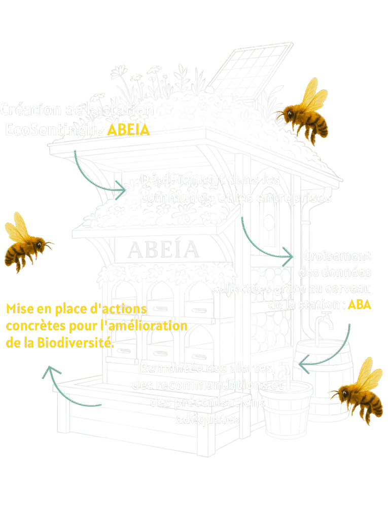 La Station EcoSentinelle ABEIA BeezWorld intègre des ruches équipées de capteurs IoT pour surveiller en temps réel la santé des colonies, agissant comme des “centres de santé” pour les abeilles